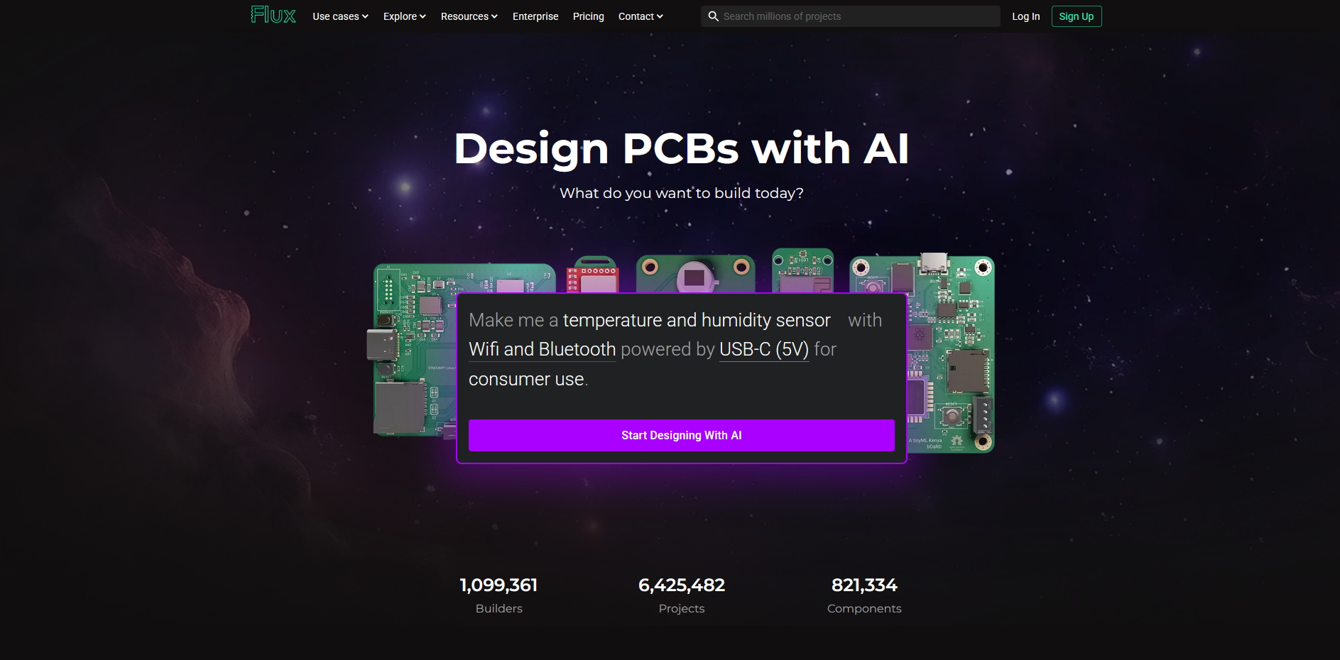 Vi sono anche servizi generici sul web, come la piattaforma di progettazione AI è Flux AI (Figura 1) che, tramite l’Intelligenza Artificiale, supporta la progettazione hardware (integrando file dei più noti ECAD) e dello sviluppo firmware, andando persino a “leggere” i datasheet e la documentazione dei componenti per scegliere quali elementi includere nel progetto.