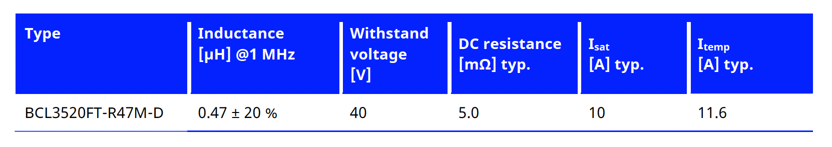 Grazie ai materiali magnetici metallici e ai design strutturali proprietari di TDK, la serie BCL3520FT raggiunge proprietà elettriche di grande rilevanza per induttori da 0,47 μH con dimensioni così ridotte. Per quanto riguarda la resistenza CC, è stata ottenuta una resistenza bassa di 5 mΩ (tipica), inferiore di circa il 15% rispetto ai prodotti equivalenti disponibili sul mercato. L'utilizzo di un filo piatto al posto del filo tondo standard riduce la generazione di calore e la perdita di potenza. Pertanto, i componenti raggiungono una corrente nominale (Isat) di 10 A, superiore di circa il 28% rispetto ad altri prodotti, facilitando l'utilizzo di questi prodotti in una vasta gamma di applicazioni. Questi induttori ad alta affidabilità possono essere utilizzati in ambienti con temperature elevate fino a +155 °C, il limite massimo di temperatura garantito. TDK continuerà a contribuire alla società con la sua ampia gamma di induttori di potenza a bassa perdita e alta efficienza per molteplici applicazioni ad alta funzionalità volte al raggiungimento della guida autonoma attraverso lo sviluppo di prodotti che soddisfano le esigenze del mercato.