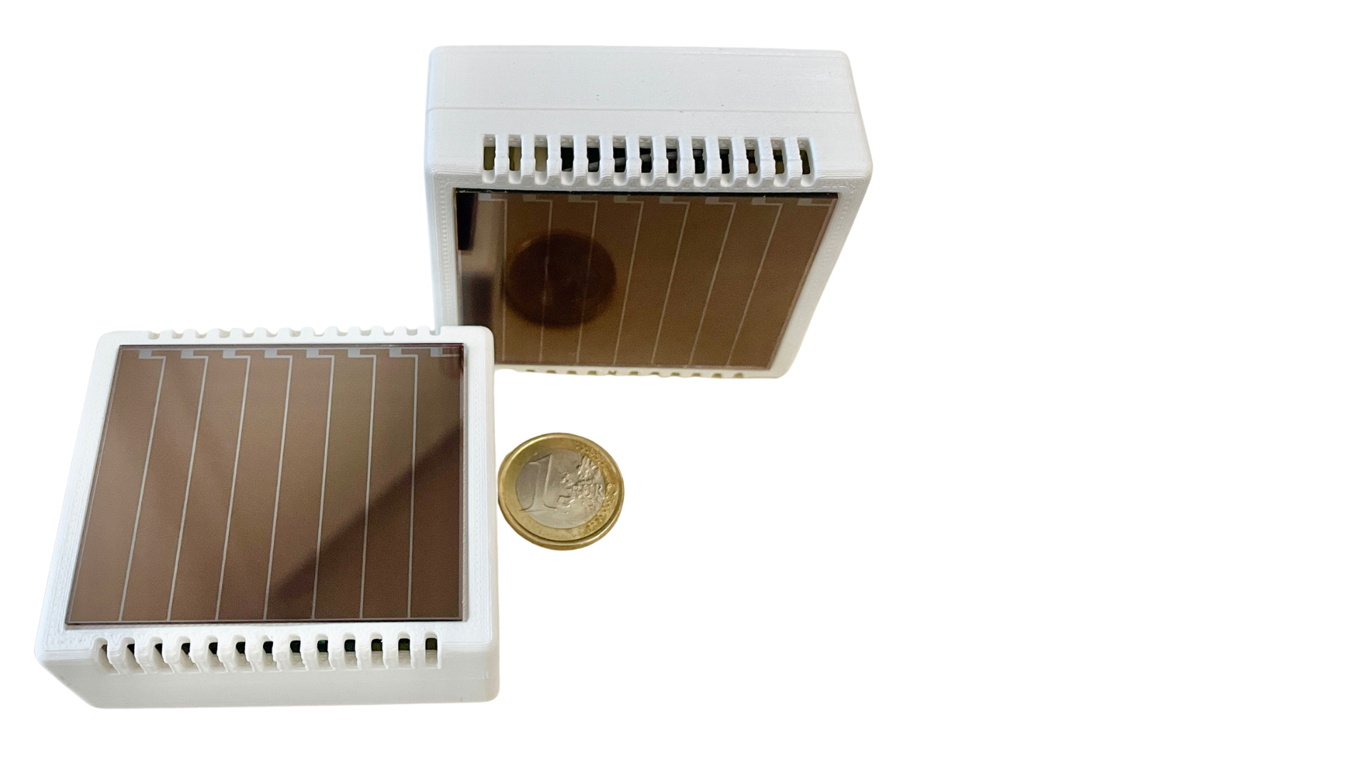 Riprendendo la filosofia costruttiva bio del super condensatore, anche il micro-pannello fotovoltaico è stato realizzato da Innoitaly in materiale organico e presenta caratteristiche di flessibilità tali da potersi adattare alle differenti tipologie di packaging dei sensori.